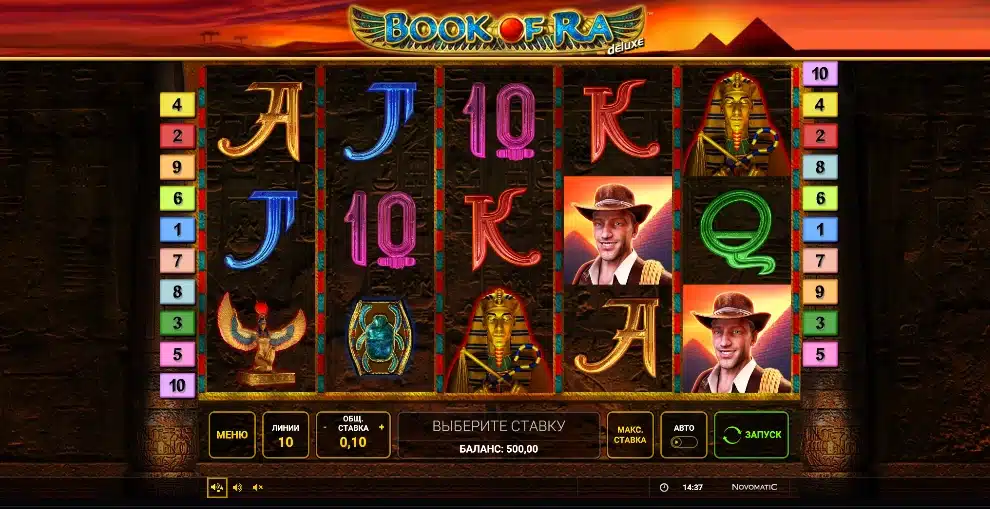 У Book of Ra Deluxe 10 платіжних ліній. Це більше, ніж у попередній версії апарату.