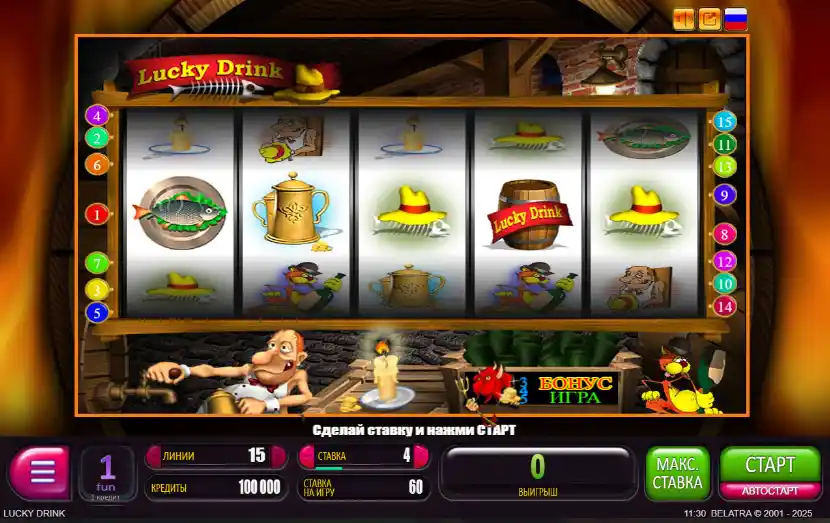 Lucky Drink — это слот от Belatra, посвящённый отдыху в пивном пабе. Автомат основан на традиционной механике и имеет простые для понимания правила. Ключевое преимущество аппарата — наличие тематического бонусного раунда.